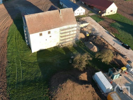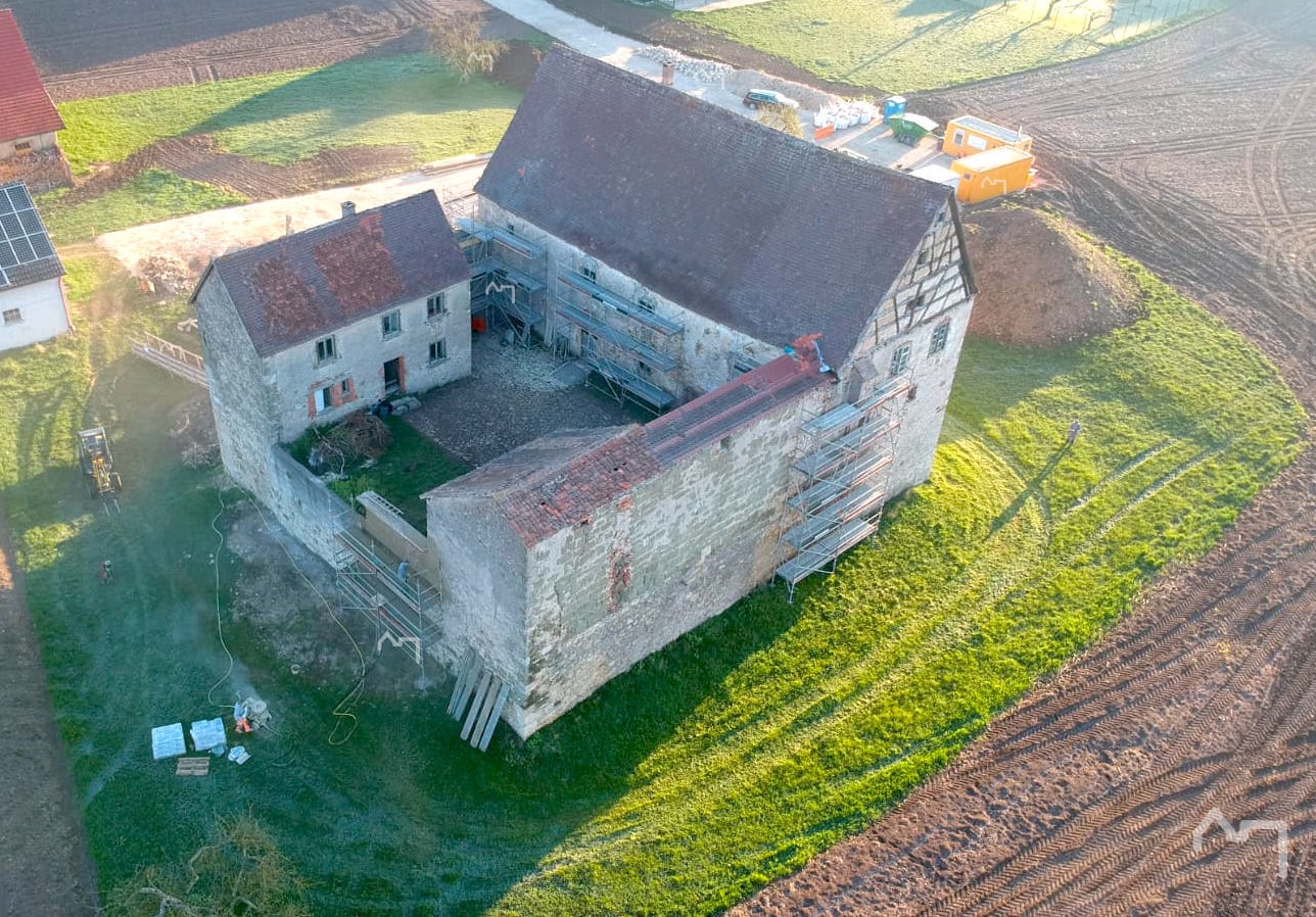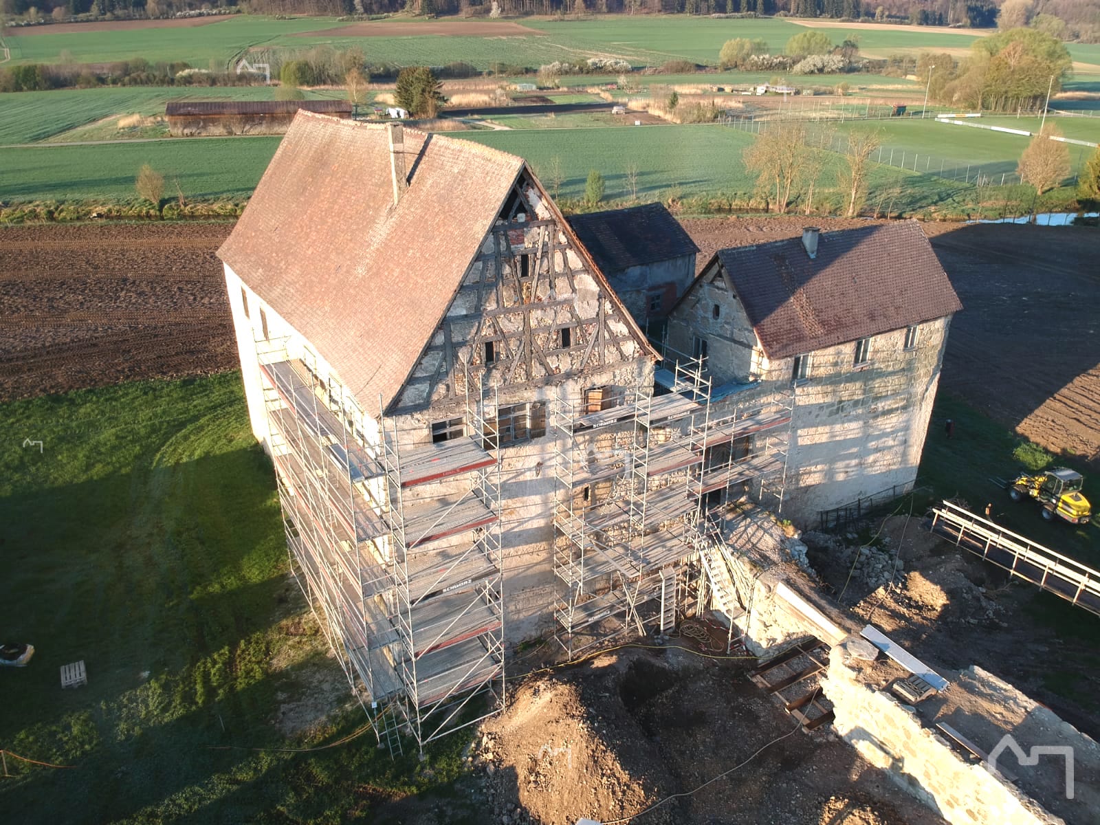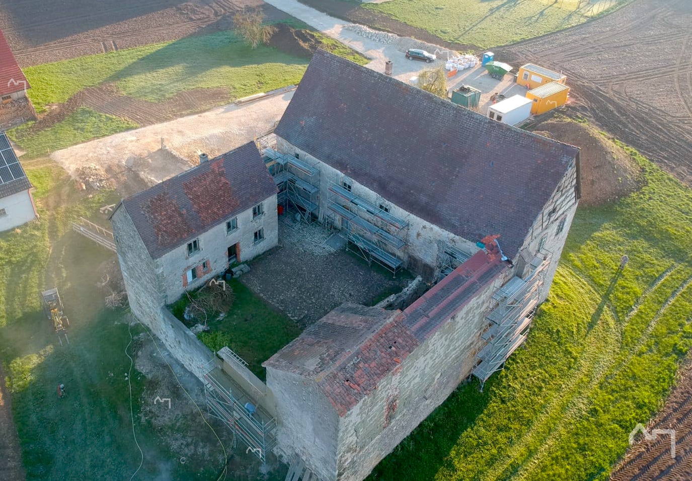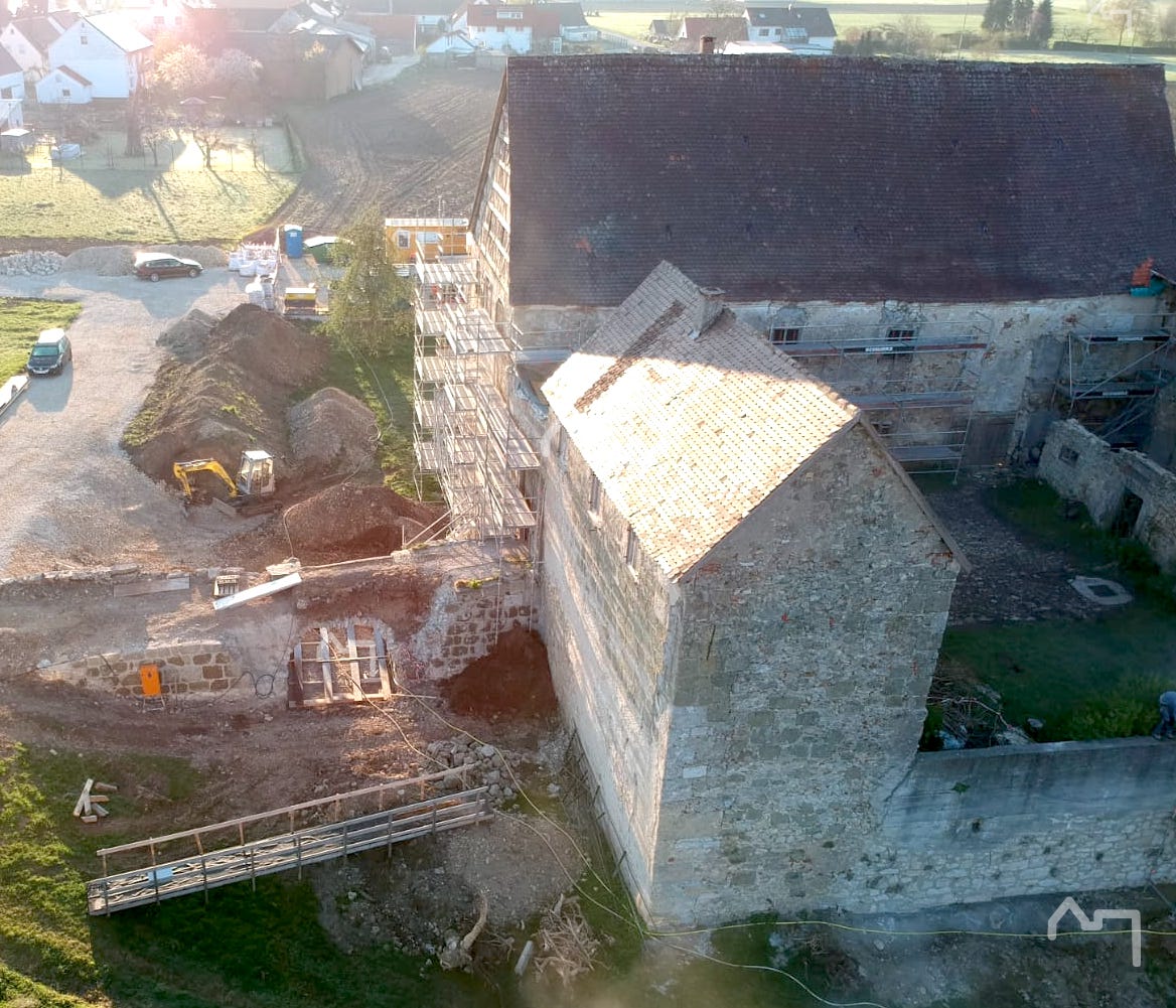 Material für 3 Einzelhäuser, und das Schloss ist nur zum Teil eingerüstet. Da erkennt man erstmal die Ausmaße!