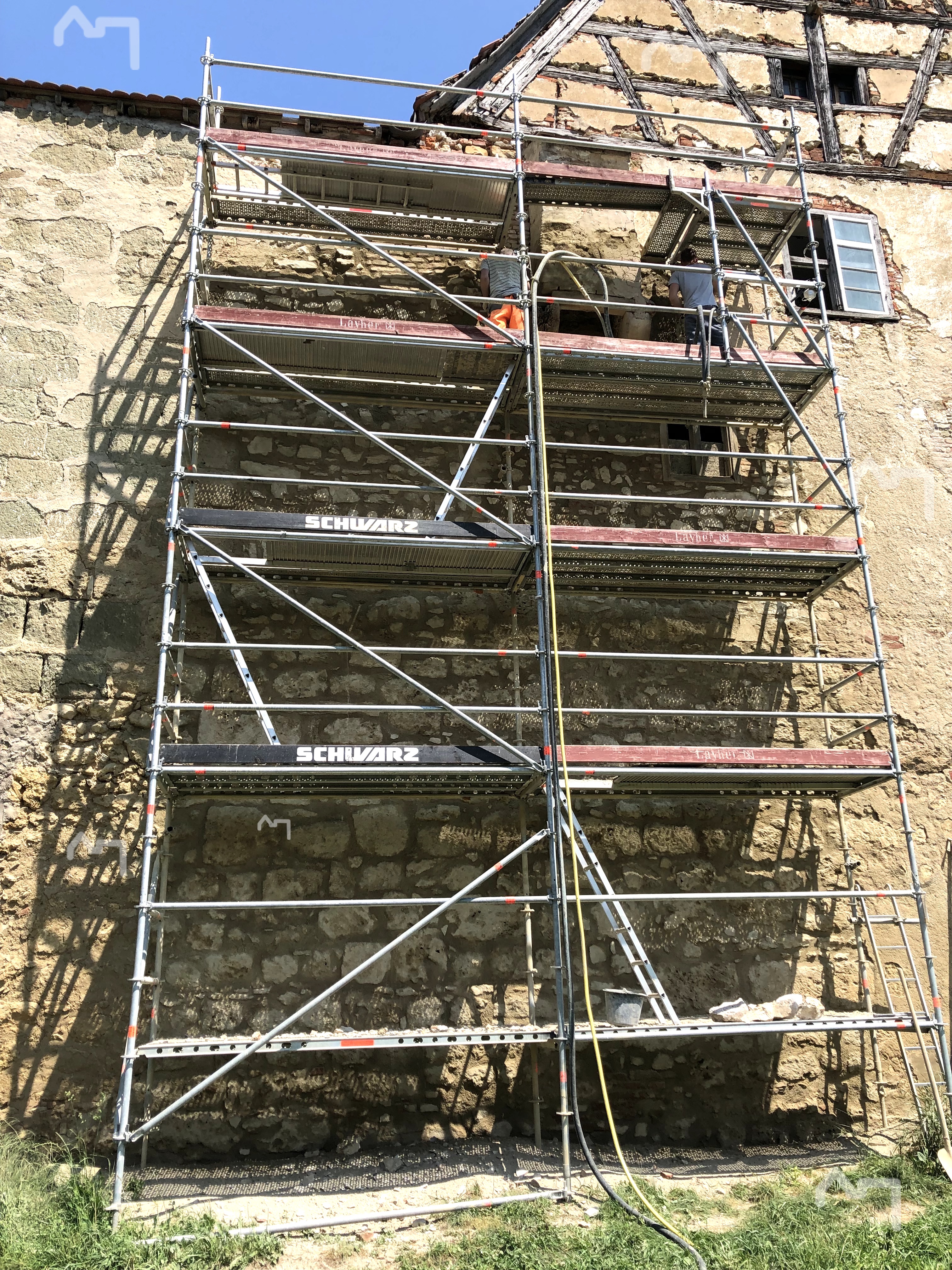 Nebenbei wird natürlich an allen Seiten des Schlosses weitergewerkelt. Im nachfolgenden Bild gehts wohl auch dem Aussenklo an den Putz!