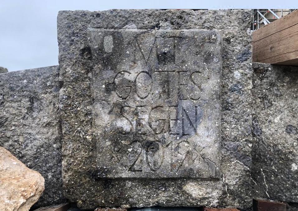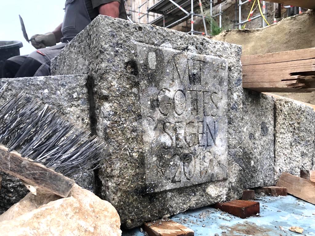 Jawoll, endlich sind sie da und auch schon gesetzt – die beiden Schlusssteine des Brückenbogens. Und hier sind sie in voller Pracht zu sehen.