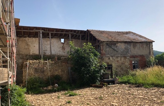 Die Fenster für die Hofseite stehen auch schon bereit.