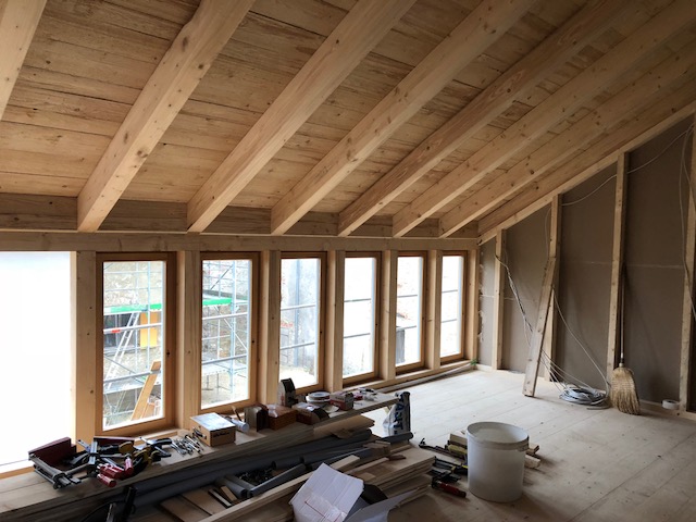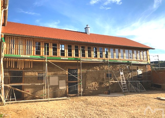 Die Fenster für die südliche Mauerseite waren ja schon eingesetzt.
