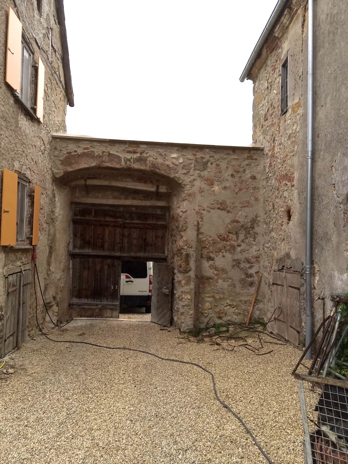 Vorher/ nachher-Bild vom Eingangstor innenhofseitig.